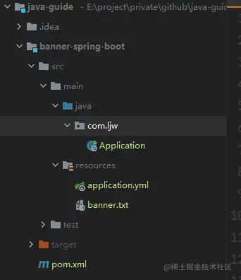 2022-01-10 11:23:15.146 INFO 109632 --- [ main] com.ljw.Application : Starting Application using Java 1.8.0_202 on LAPTOP-HTA2F6RV with PID 109632 (E:\project\private\github\java-guide\banner-spring-boot\target\classes started by ljw in E:\project\private\github\java-guide)