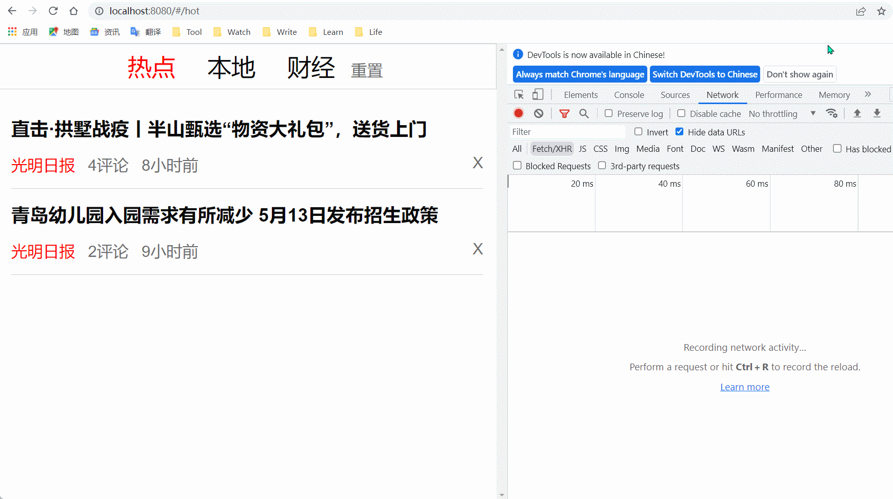 修改 Hot.vue 、Local.vue、Money.vue 组件中的代码,如下
