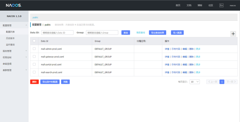 将应用所有配置添加到Nacos注册中心中去,具体配置文件如下。
