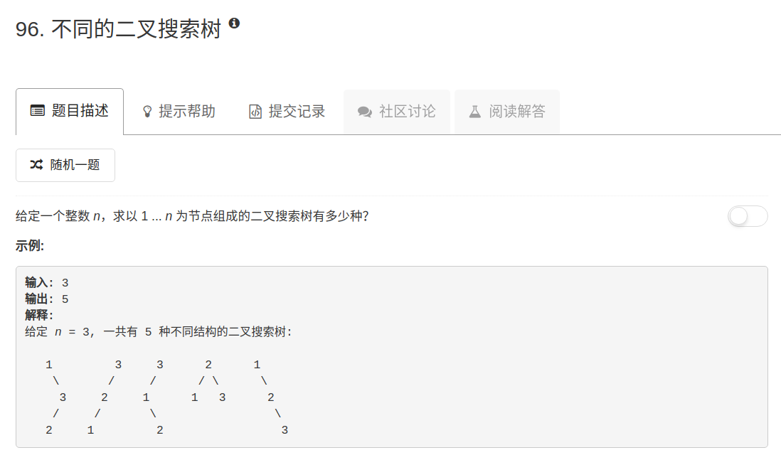 int left_num = numTrees(i - 1); // 左边的数可以构建多少个二叉搜索树
