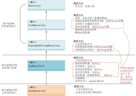 Repository位于Spring Data Common的lib里面,是Spring Data 里面做数据库操作的最底层的抽象接口、最顶级的父类,源码里面其实什么方法都没有,仅仅起到一个标识作用。CrudRepository作为直接继承Repository的次顶层接口类,看名字也可以大致猜测出其主要作用就是封装提供基础CRUD操作。PagingAndSortingRepository继承自CrudRepository,自然也就具备了CrudRepository提供的全部接口能力。此外,从其自身新提供的接口来看,增加了排序和分页查询列表的能力,非常符合其类名的含义。
