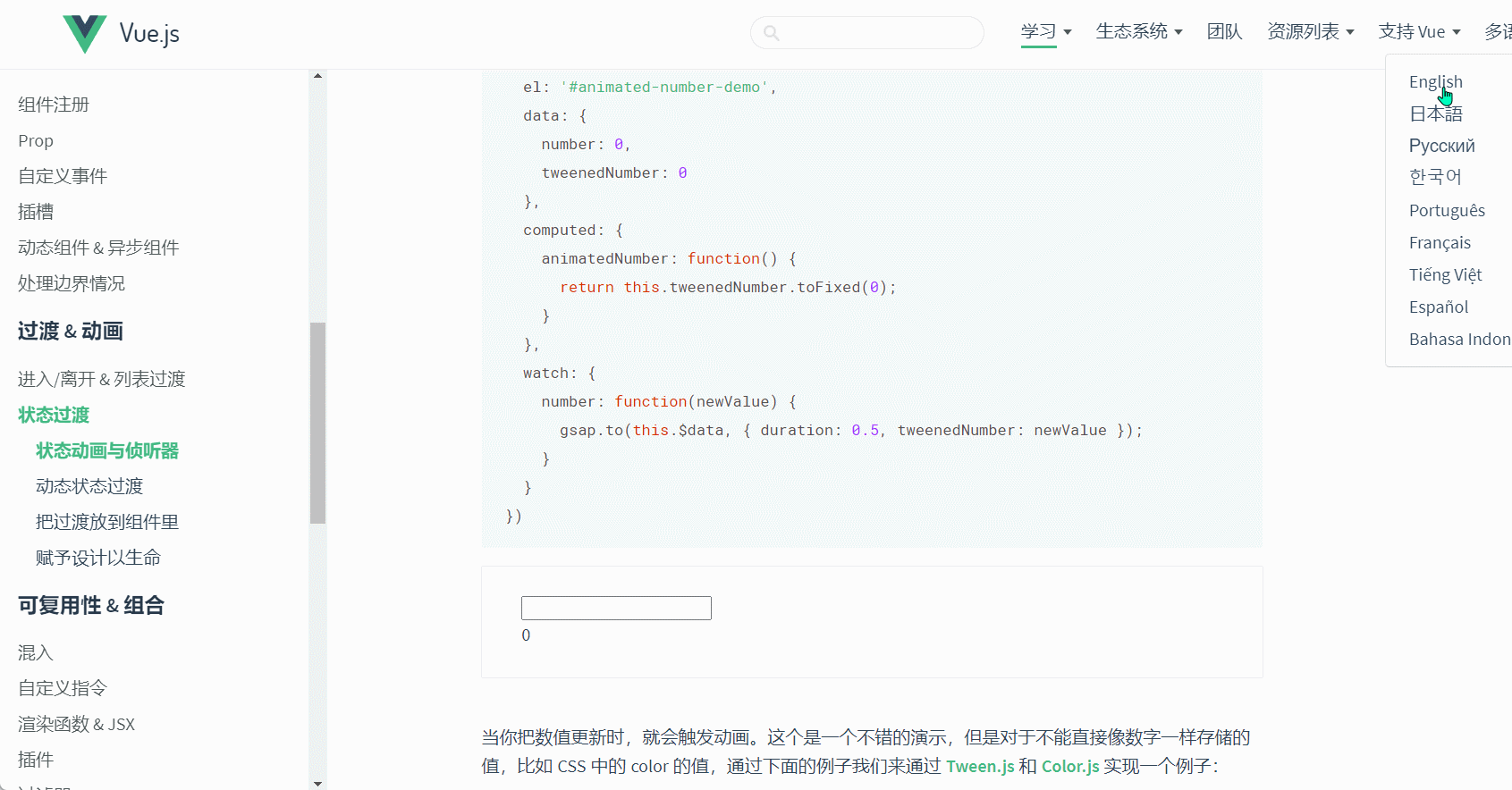 首先带大家先看看官网 Vue2—状态过渡 中是怎么介绍的