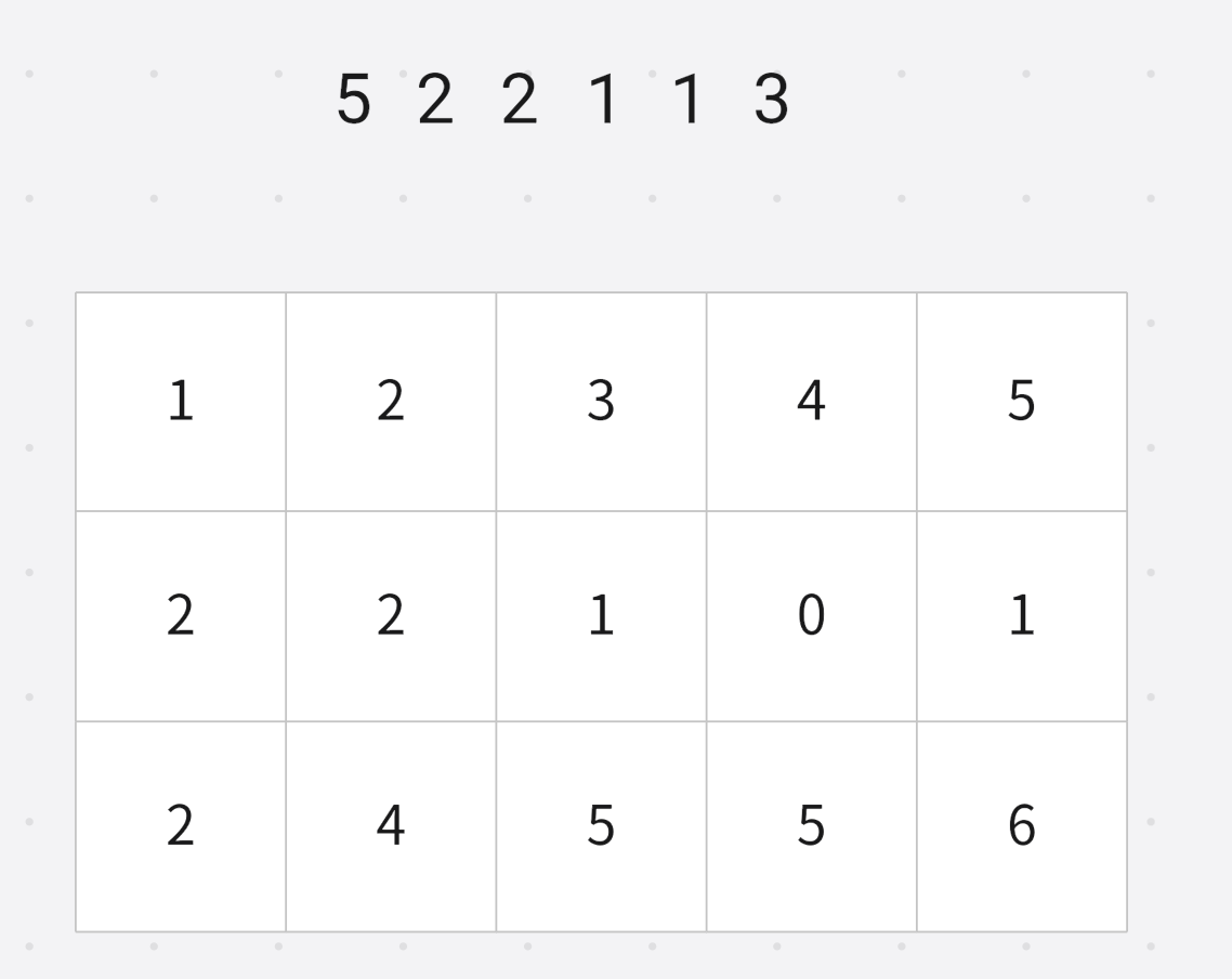 小于等于 3 3 3的数字个数是 5 5 5, 然后对应位置 − 1 -1 −1