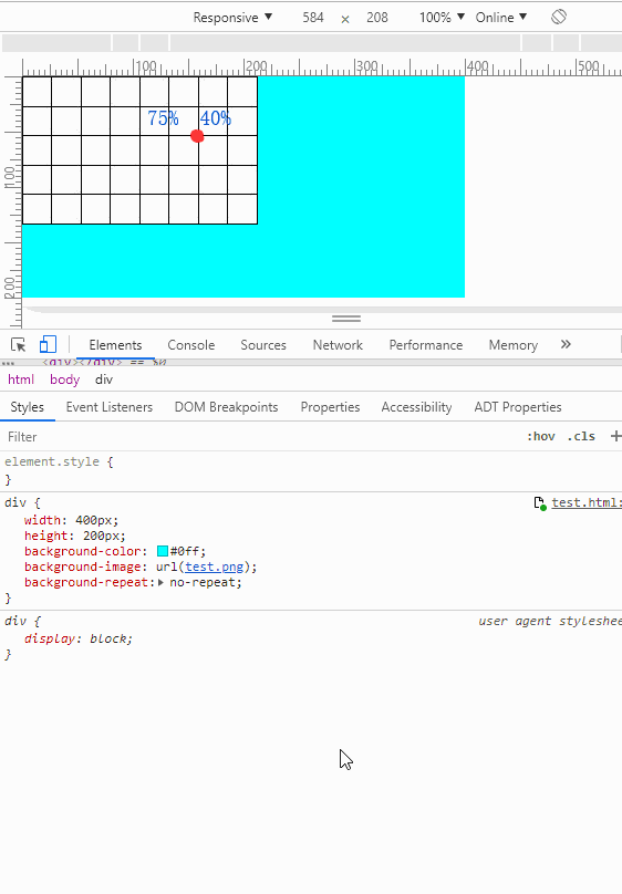 22.【背景位置百分比】🐍background-position百分比的正确理解方式:图片自身的百分比位置与容器同样的百分比位置重合