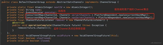 先来看看唯一一个实现类 DefaultChannelGroup 的源码