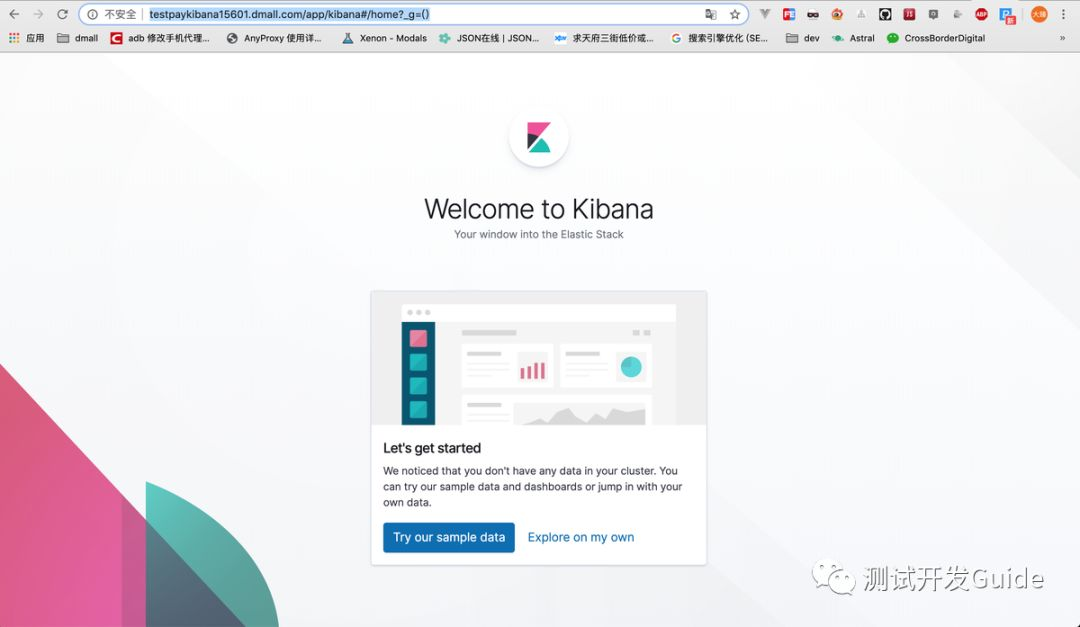 浏览器打开 http://IP:5601/app/kibana#/home?_g=()