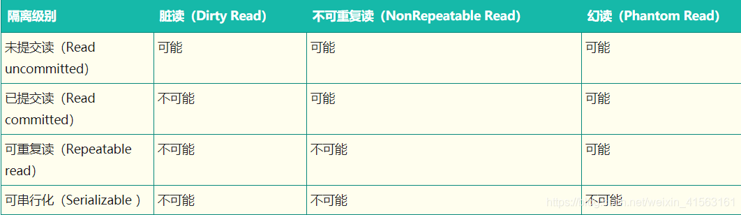 每一个级别都只是指导标准,每个数据库对其的实现都有差异,有的数据库在Read Committed级别时,就已经实现了Read Repeatable的效果,有的数据库干脆不提供Read Uncommitted级别。