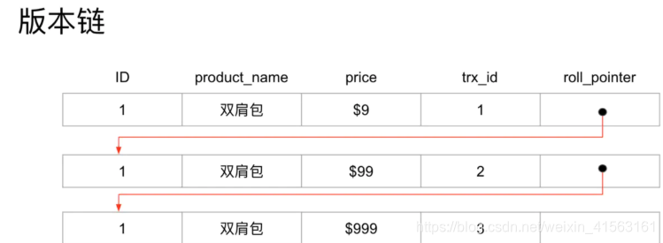在InnoDB中每条记录中都有2个隐藏列,1个是trx_id,一个是roll_pointer。