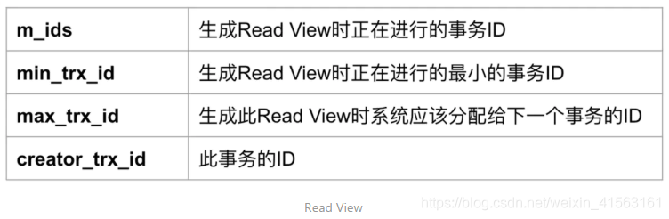 MVCC并不是将表中所有的记录都为这个事务冻结了一份快照,而是在事务执行第一条语句时时生成了一个叫做Read View的数据结构,注意,Read View是事务执行语句时才会生成的,仅仅执行start transaction是不会生成Read View的。