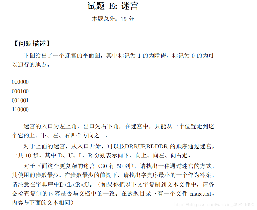 个字符串,包含四种字母 D、U、L、R,在提交答案时只填写这个字符串,填