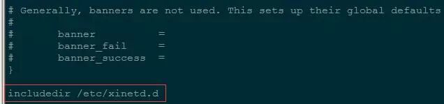 2、检查/etc/xinetd.conf的末尾是否有 includedir /etc/xinetd.d ,没有就加上