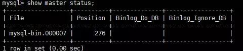 记录 mysql-bin.000007 以及 276,编写以下命令待用;