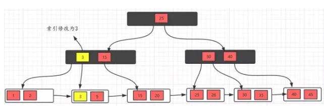 - 删除10,删除后,不满足要求,发现左边兄弟节点有多余的元素,所以去借元素,最后,修改父节点索引