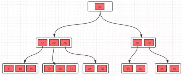 - 每个节点中的关键字都按照从小到大的顺序排列,每个关键字的左子树中的所有关键字都小于它,而右子树中的所有关键字都大于它。